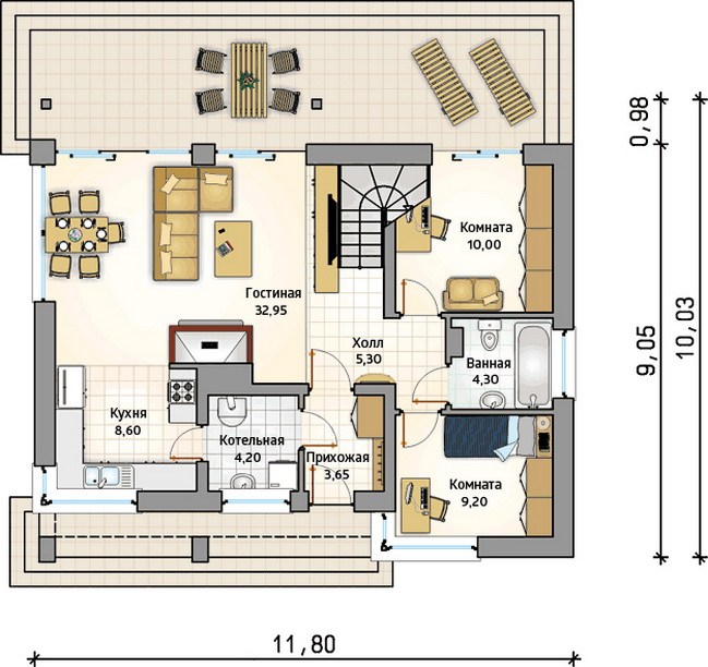 Общая площадь — 118.2 м2 | Площадь застройки — 112.95 м2