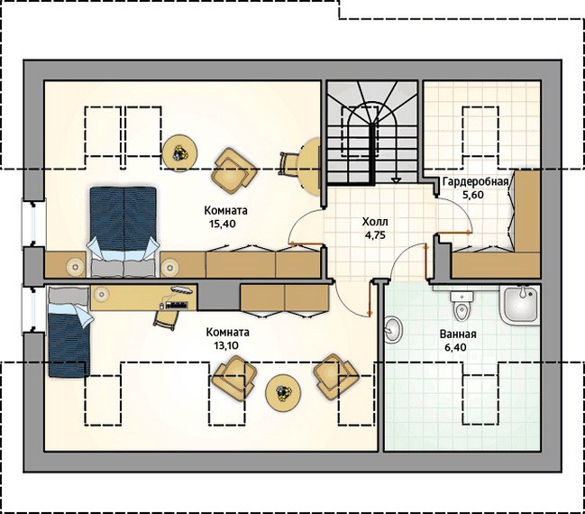1. Обвязка по фундаменту строенный ростверк из доски 50х150 мм. 2. Внешние стены и фронтоны: доска 50х150 мм. 3. Лаги перекрытия пола: 50х150 мм. 4. Чердачные перекрытия: доска 50х150 мм. 5. Раскосы: доска 25х100 мм. 6. Межкомнатные перегородки несущих стен из доски 50х150 мм. 7. Межкомнатные перегородки из доски 50х100 мм. 8. Черновые полы: OSB 18 мм. 9. Внешняя обшивка каркаса: OSB 9 мм. Устройство кровли: 1. Стропила: доска 50х150 мм, подстропильные затяжки 50х150 мм. 2. Гидроветрозащитная мембрана STROTEX 1300 Basic 3. Контробрешетка из бруска 25х50 мм. 4. Обрешетка из доски 25х100 мм. 5. Комплектующие элементы кровли: карнизная планка, ветровая планка. 6. Обшивка по обрешетке кровли OSB 9 мм. 7. Кровельное покрытие: мягкая двухслойная черепица Shinglas. Утепление и паро-гидроизоляция: 1. Утепление пола URSA TERRA 150 мм. 2. Утепление внешних стен URSA TERRA 150 мм. 3. Шумоизоляция межкомнатных перегородок URSA TERRA 100 мм. 4. Утепление кровли URSA TERRA 150 мм, скатная кровля. 5. Пароизоляционная пленка по внешним стенам. 6. Гидроветрозащитная пленка по межкомнатным перегородкам. 7. Пароизоляционная пленка по чердачному перекрытию. 8. Пароизоляционная пленка по стропилам. 9. Гидроветрозащитная мембрана по фасаду STROTEX 1300 Basic Внешняя отделка: 1. Имитация бруса. 2. Подшивка кровельных свесов. 3. Водосточная система. Остекление: 1. Окна ПВХ с двойным стеклопакетом. Биохимическая защита: Весь силовой каркас обрабатывается биохимическим составом NEOMID 440 Монтаж и доставка: 1. Монтаж. 2. Доставка. |